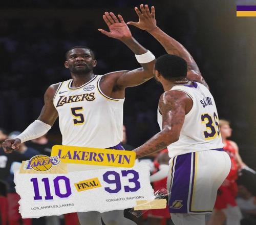 全場結(jié)束,湖人110-93大勝猛龍,下一場后天打掘金。東契奇25分2板7助、詹姆斯24分4板7助2帽。艾頓10投10中,怒砍25分13板,正負值+20僅次于范德彪(+25)。巴恩斯22分9板、馬穆20分6板、英格拉姆19分6板7助3斷。