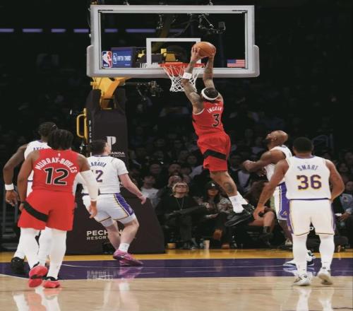 第四節(jié)決戰(zhàn),猛龍失去投籃信心,外線出現(xiàn)機會也沒人敢出手,導(dǎo)致24秒進攻違例。比賽還剩7分鐘,湖人拉開到兩位數(shù)。最近7場比賽,巴恩斯三分球合計21中2。身為猛龍建隊基石,投射短板太明顯。整個第四節(jié),猛龍三分9中1。