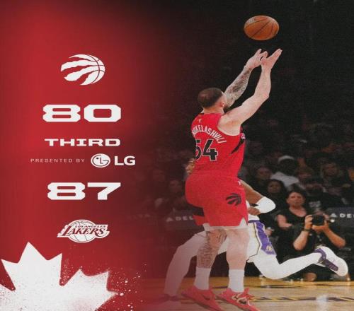 第三節(jié)最后2分鐘,猛龍防守出現(xiàn)問題,詹姆斯和八村塁連中三分,湖人拉開到8分。三節(jié)打完,湖人87-80領(lǐng)先猛龍7分。艾頓9中9已經(jīng)砍下18分,拉拉維亞5中1僅得2分。昨天打開拓者,拉拉維亞全場2中0,估計他要被拿下首發(fā)了。