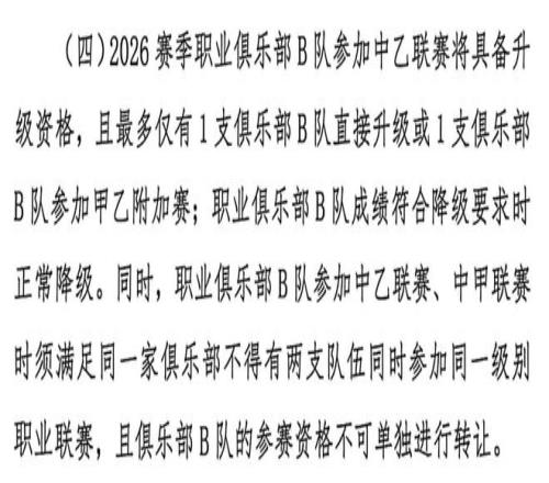 2026賽季職業聯賽政策變化,升降級有調整,B隊迎來新機遇