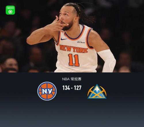 北京時間2月5日NBA 常規賽,紐約尼克斯對陣丹佛掘金。全場雙方持續拉鋸緊咬比分,半場尼克斯55-53掘金,雙方鏖戰雙加時,第二個加時掘金受背靠背影響體能不支,尼克斯在布倫森帶領下最后階段拉大分差收下比賽,最終尼克斯134-127掘金豪取8連勝。