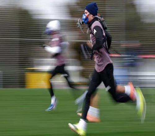 “面罩用于通過心電圖和氣體分析(如球員呼出的二氧化碳)來了解球員的呼吸能力。這些面罩的好處在于它們是便攜的,可以在任何地方進行測試,比如在球場上,進行短時間的小比賽。”