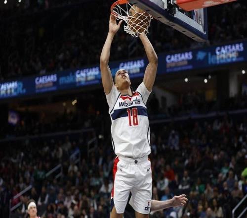 而薩爾無愧榜眼的身份,在本賽季,也就是他的二年級賽季,已經將數據提升到了17.4分、7.7個籃板、2.8次助攻和2.1次蓋帽,攻防兩端都有了肉眼可見的進步,而且還開發出了三分投射的能力,活脫脫一個奇才隊的文班亞馬。