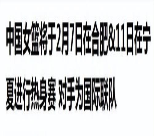 直播吧《中國女籃將于2月7日在合肥&11日在寧夏進行熱身賽 對手為國際聯隊》發布時間:2026.1.16中國新聞網《中國女籃熱身賽(銀川站)2月11日開幕》發布時間:2026.1.30武漢光電文體在線《官網更新中國女籃熱身賽名單 王思雨、張子宇在列》發布時間:2026.2.3