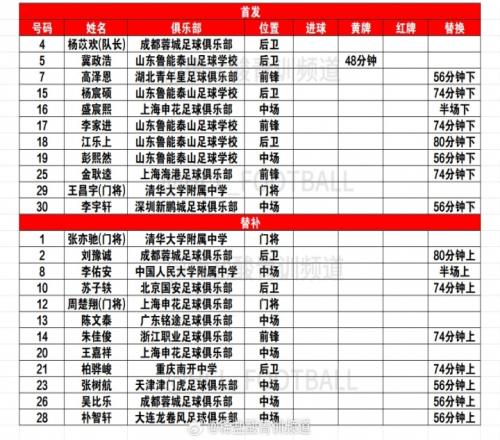 體育播報02月05日宣 2月3日第一回合交鋒,中國U16男足0:3烏茲別克斯坦U16,媒體人稀鹽酸青訓頻道發布了本場比賽的上場情況。