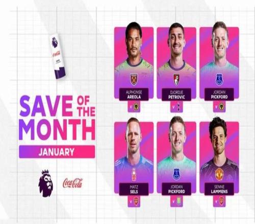 拉門(mén)斯在對(duì)陣阿森納比賽中的撲救入圍英超1月最佳撲救候選。