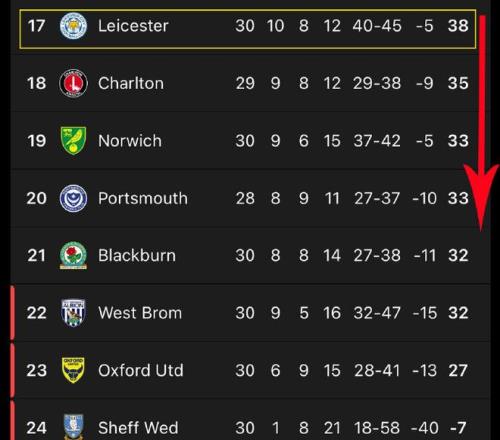 最近4輪英冠,萊斯特城0勝1平3負僅拿1分,球隊正處于危機之中。而英冠戰罷30輪,萊斯特城原本10勝8平12負積38分,在被扣6分后,萊斯特城僅積32分,排名倒數第5位。