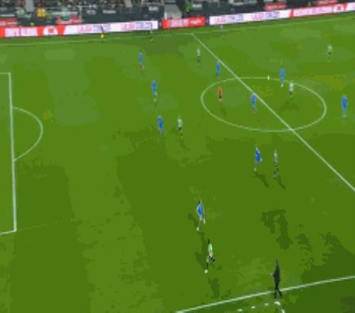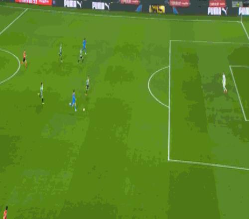 第16分鐘,不應(yīng)該,盧克曼單刀低射偏出