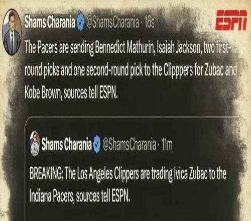 北京時間2月6日,據名記Shams報道,快船與步行者達成一筆2換5的交易,前者送出祖巴茨和科比·布朗,從后者引入馬瑟林、以賽亞·杰克遜、2個首輪簽(2026年受保護,2029年無保護)以及1個次輪簽。