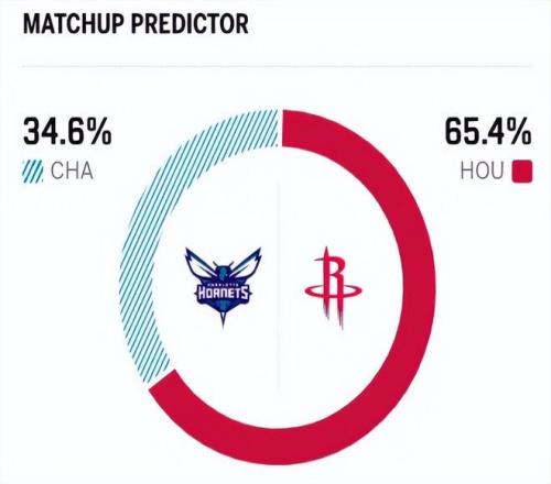 賽前,美媒ESPN對本場比賽進行了勝率預測,火箭隊勝率高達65.4%,黃蜂勝率則僅有34.6% ,差距還挺明顯。