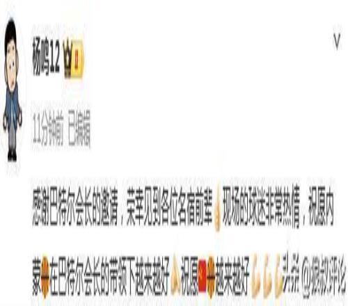 賽后,前遼寧男籃主帥楊鳴更新社媒發(fā)文:“感謝巴特爾會(huì)長(zhǎng)的邀請(qǐng),榮幸見(jiàn)到各位名宿前輩,現(xiàn)場(chǎng)的球迷非常熱情,祝愿內(nèi)蒙,在巴特爾會(huì)長(zhǎng)的帶領(lǐng)下越來(lái)越好,祝愿越來(lái)越好。”