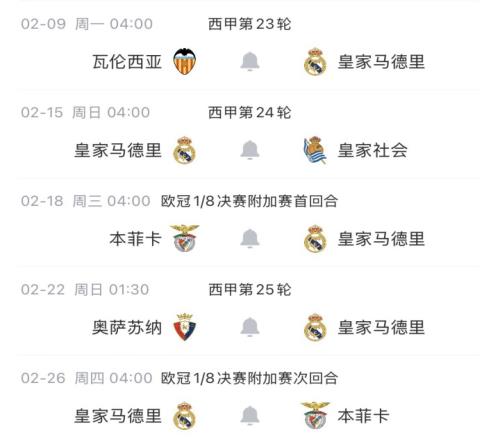 皇馬未來賽程↓