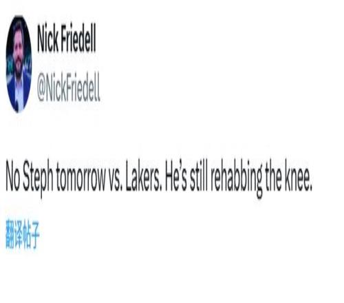 北京時間2月7日,勇士隊球星斯蒂芬-庫里在接受ESPN采訪時表示,他正在對右膝傷勢進行康復治療,過去兩場比賽他均因傷缺陣,康復過程需要保持耐心。隨后,勇士記者報道稱,庫里已確定不會參加明日對湖人的比賽。