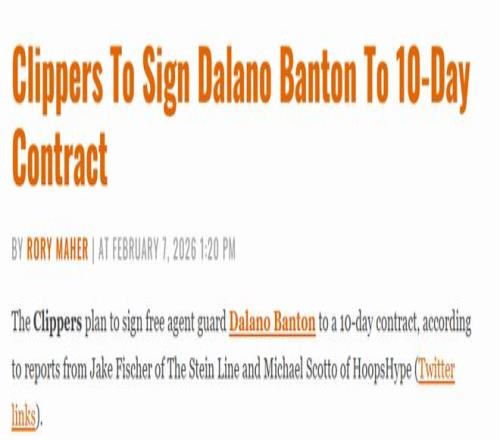 北京時間2月8日,據名記Fischer和Scotto報道,此前連續送走哈登和祖巴茨的快船又有新運作,他們用一份10天短合同簽下自由球員達拉諾-班頓。