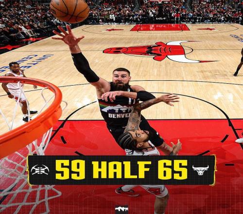 次節(jié)比賽,雙方第二節(jié)進(jìn)攻火力下滑均是不足30分,尤其是掘金比首節(jié)少得到19分。掘金在次節(jié)開局44-46被反超,掘金連得5分奪回領(lǐng)先,公牛回敬一波8-0攻勢(shì),雙方之后纏斗至58-58。公牛一波7-1攻勢(shì)拉開比分,掘金單節(jié)20-29輸?shù)?分,上半場(chǎng)結(jié)束掘金59-65被公牛反超。前兩節(jié)比賽,掘金三分命中數(shù)8-11落后,約基奇6中3得到9+11+7、小哈達(dá)威18分與斯特勞瑟11分,西蒙斯13分與布澤利斯10+7。