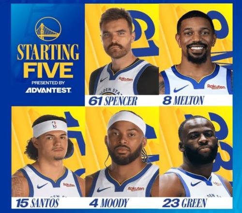 首發陣容方面,湖人隊這邊,東契奇缺陣,艾頓因右膝酸痛也缺席,里夫斯依舊替補出戰,雷迪克教練排出的首發五人組為:勒布朗-詹姆斯、馬庫斯-斯馬特、杰克-拉拉維亞、八村壘、賈克森-海斯。;勇士這邊,庫里、巴特勒、波神缺陣,首發陣容則為:帕特-斯潘塞、丹東尼-梅爾頓、摩西-穆迪、吉-桑托斯、德雷蒙德-格林。