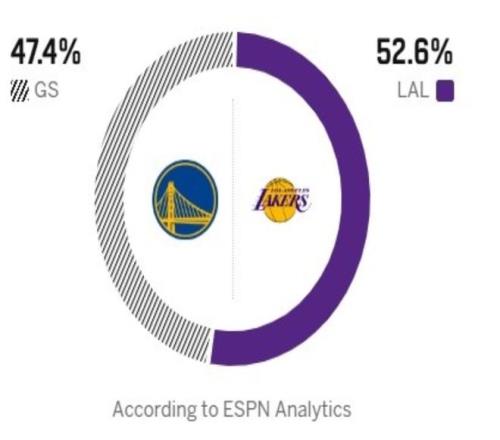北京時間2月8日,NBA常規(guī)賽迎來湖人與勇士的豪門對決,遺憾的是,勇士這邊巴特勒賽季報銷,庫里和新援波爾津吉斯因傷缺陣,而湖人這邊也少了東契奇與艾頓,這也讓這場比賽少了不少看點。本賽季雖然勇士遭遇嚴重的傷病,但是他們在外線的投籃總能給人驚喜,也總有奇兵站出來幫助球隊爆冷拿下勝利,上一場比賽,勇士就擊敗了太陽,目前以28勝24負的戰(zhàn)績位列西部第八。反觀湖人這邊近期拿到二連勝,以31勝19負的戰(zhàn)績位列西部第五。雖然東契奇缺陣,但是里夫斯回歸后就打出驚艷的表現(xiàn),上場對陣76人狂砍35分,聯(lián)手詹姆斯帶隊拿到勝利。本場比賽,考慮到勇士客場作戰(zhàn)加上隊內(nèi)三大得分手都打不了,湖人拿到勝利的概率很大。ESPN數(shù)據(jù)賽前預測,湖人拿下勝利的概率為52.6%。