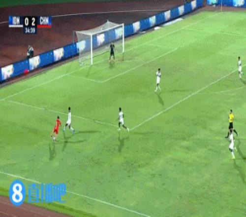 第41分鐘,趙松源前場得球在三人包圍下突破殺入禁區后低射得手,U17國足3-0印尼U17。↓