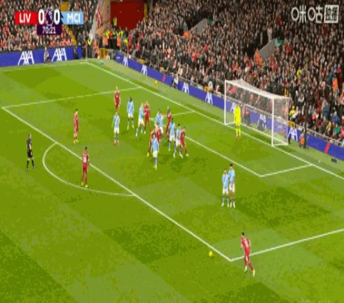 第74分鐘,索博斯洛伊遠(yuǎn)距離任意球轟出精彩世界波,利物浦1-0曼城!