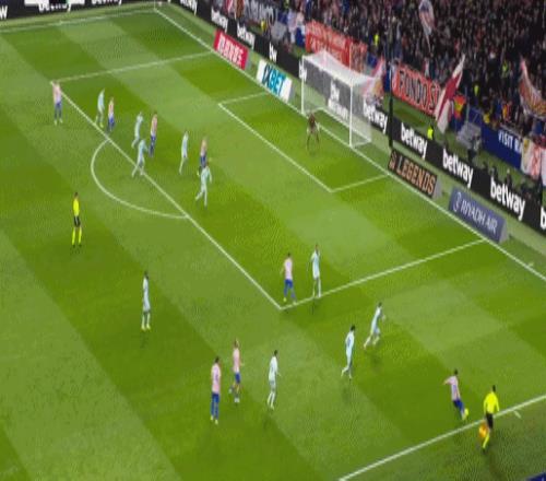下半場第76分鐘,馬競造成迭戈-略倫特不幸烏龍,但VAR介入后判罰格列茲曼越位在先,這粒進球被吹,VAR劃線鏡頭顯示,格列茲曼的腳尖稍稍越位。