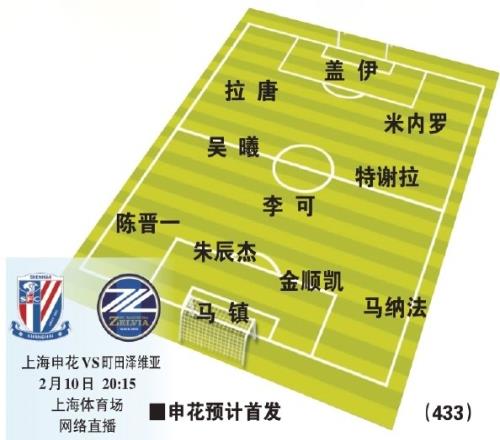 附東體預測申花首發(433):馬鎮;陳晉一、朱辰杰、金順凱、馬納法;李可、吳曦、特謝拉;拉唐、蓋伊、米內羅