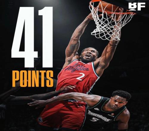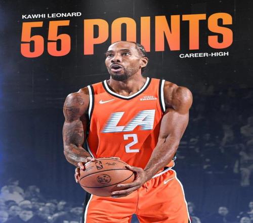 美中不足的是,倫納德在第四節剩下9分鐘前就已經拿到了40分,但在那之后,倫納德連著投丟了4次運動戰進球和1記罰球——并不妨礙大勝的結果,只是如果能保持手感的話,這場倫納德說不定能打破生涯第二高分(目前是45分)。