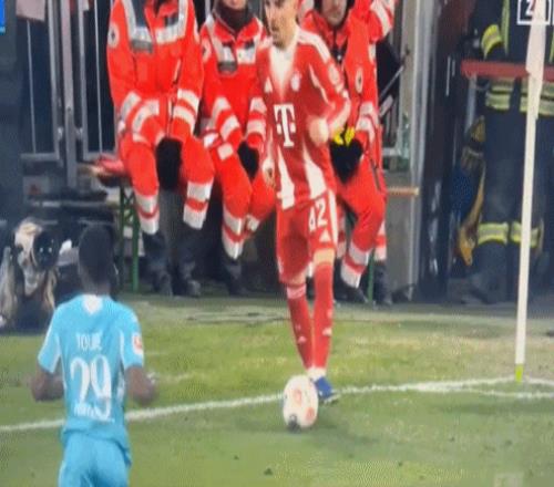 體育播報2月10日宣 拜仁在本輪德甲5-1大勝霍芬海姆,迪亞斯戴帽并獨造5球、凱恩點射雙響。但最令人印象深刻的或許還是小將卡爾在原地踩單車將皮球碰出邊線。