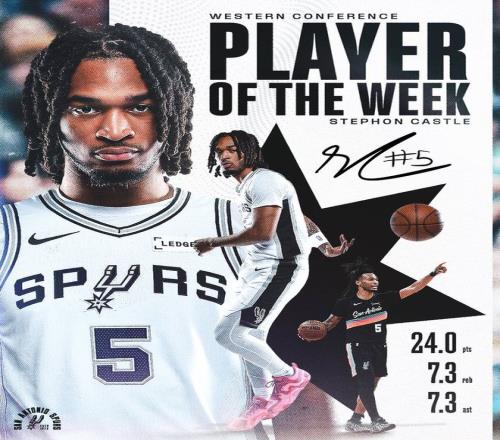過(guò)去一周,卡斯?fàn)枅?chǎng)均24分7.3籃板7.3助攻3.0搶斷,投籃命中率63%,幫助馬刺拿下3勝0負(fù)的戰(zhàn)績(jī)。