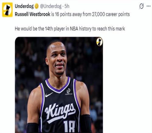 北京時間2月10日,國王后衛拉塞爾-威斯布魯克達成了27000分里程碑,37歲的威少在歷史得分榜上排在第14位,他距離第13的埃爾文-海耶斯只差313分,國王這支擺爛的球隊剩下的唯一亮點就是威少,此役后國王已經吞下13連敗。