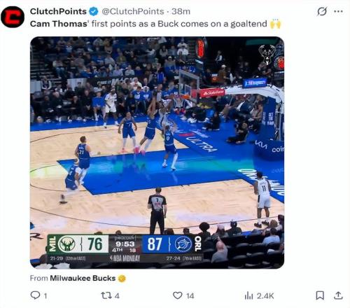 北京時間2月10日托馬斯迎來雄鹿首秀,面對魔術隊這支防守球隊,全場13分托馬斯就命中了這一個運動戰,5中1,三分1中0,罰球2中2,拿4分1籃板1助攻,命中率20%,正負值-1。