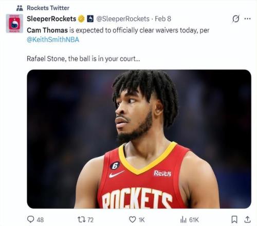 實際上在托馬斯被籃網裁掉后,休斯頓火箭隊也是他的潛在下家之一,而火箭距離硬帽只有125萬,火箭最高只能開出125萬的底薪,此前很多人都覺得托馬斯是因為薪水沒有加盟火箭,實際上根本不是。