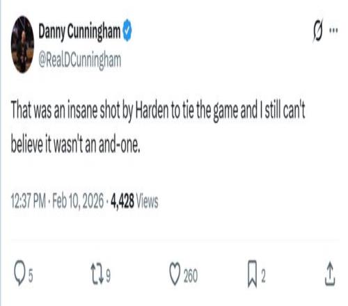 騎士記者Danny Cunningham也感嘆到:“哈登這一記扳平比分的三分真的是不可思議,我現(xiàn)在還不敢相信這球竟然不是3+1?!?/p>