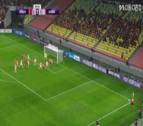 第55分鐘,蓉城左路定位器開至禁區造成混亂,胡荷韜遠射打偏。↓