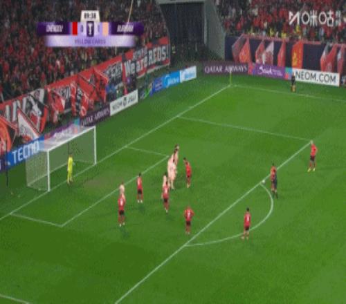 第90分鐘,韋林頓·席爾瓦突破為蓉城贏得禁區線附近的定位球機會,隨后費利佩直接攻門打在人墻上飛出底線。↓