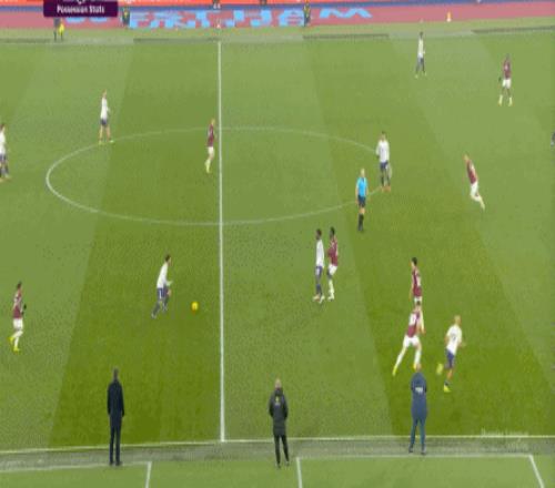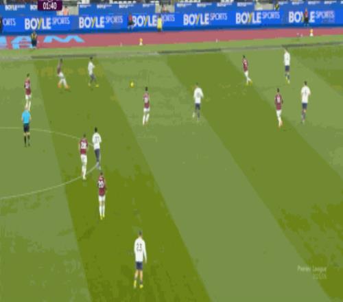 一次抓曼聯封閉空間不力,被西漢姆聯轉移到弱側形成進攻:
