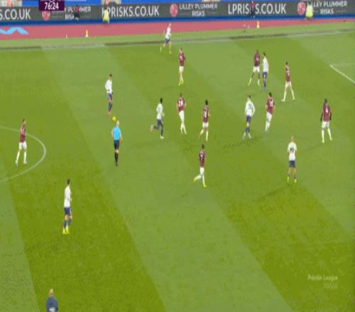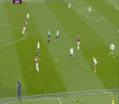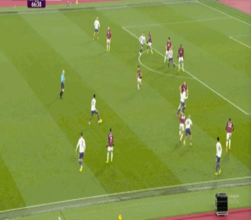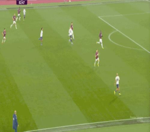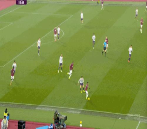 到了這個時候,此前在一周一賽時被掩蓋的問題就會浮出水面,比如這次推進,好不容易打出了速度,但到了弱側,你也不知道是達洛特傳大了,還是阿瑪德-迪亞洛追不上了,反正一次很好的推進變成了西漢姆聯的門球: