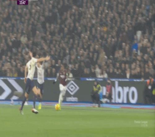 于是在過了30分鐘之后,西漢姆聯一次抓達洛特的處理球失誤: