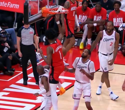 易邊再戰,申京接球順下,直殺籃下掄圓胳膊大力劈扣,阿門籃下旱地拔蔥騎著鄧恩直接單臂補扣,鎖定今日十佳球。杜蘭特起飛試圖隔扣大洛佩斯造成犯規,快船挑戰成功改判好帽。芬尼-史密斯單防倫納德24秒違例,杜蘭特連得9分已得到20分,火箭領先到5分。