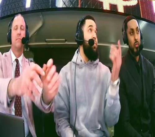 范弗利特現身火箭演播室,搭檔解說比賽。