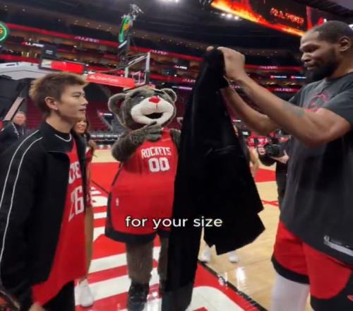 這場(chǎng)比賽之前中國(guó)娛樂(lè)明星任嘉倫來(lái)到火箭主場(chǎng)與凱文-杜蘭特進(jìn)行了互動(dòng),他為杜蘭特送上了唐裝,杜蘭特也將自己火箭7號(hào)球衣送給他,任嘉倫還表示這是按照杜蘭特2.11米的尺寸定做的,杜蘭特表達(dá)了感謝,杜小帥還說(shuō)希望跟任嘉倫一樣帥。