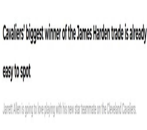 哈登加盟后,也讓騎士中鋒艾倫的表現明顯提升。在哈登來之后的兩場比賽中,艾倫場均25.5分11.5籃板1助攻;在哈登來之前,艾倫出戰40場比賽,場均13.9分8.1籃板2.1助攻1.1搶斷0.9蓋帽。此前,加內特曾說哈登能讓莫布利和艾倫每場多拿6-8分,現在看來,提升作用真的不小!克利夫蘭媒體感慨,他成為哈登交易的最大贏家。