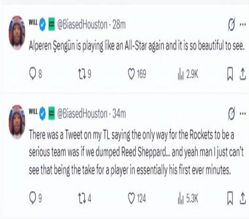 隨后他還寫道:申京現(xiàn)在又表現(xiàn)的像一位全明星球員了,看到這一幕真的太美妙了。此前還有人建議火箭放棄謝潑德,他們認(rèn)為只有放棄謝潑德火箭才能成為強隊,伙計們我真的無法想象在生涯前兩個賽季就被放棄的高順位球員。