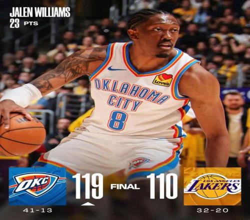 詹姆斯22+6+10 雷霆7人上雙勝湖人