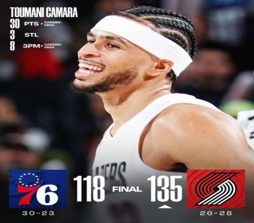 開拓者大勝76人 楊瀚森2分1籃板