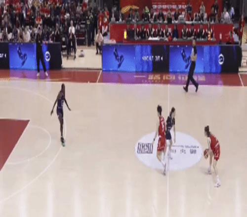 旋即,中國隊打出了本場一個高光時刻:陳玉婕后場搶斷后,然后帶球一路突破上前,一條龍拿分!