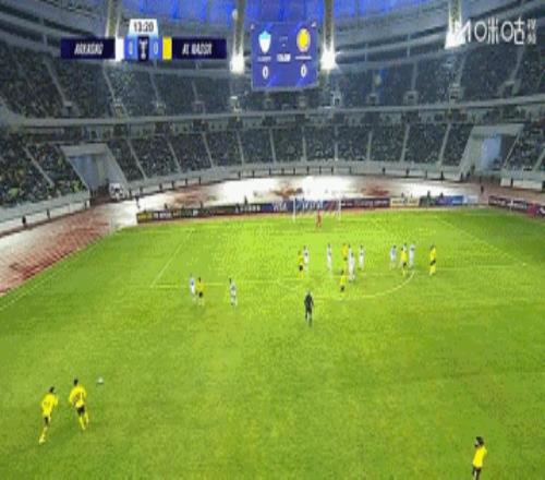 上半場補時2分鐘,阿卡達0-1利雅得勝利。
