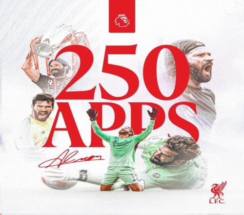 此役客場對陣桑德蘭,阿利松首發出戰,這位巴西門將迎來英超生涯第250次出場,全部是代表利物浦出戰。