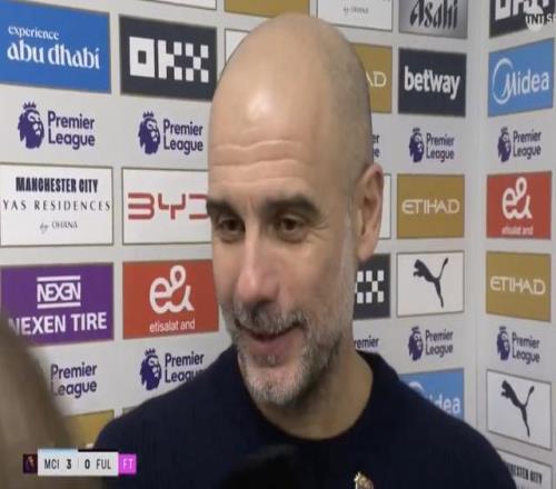 英超第26輪,曼城主場3-0擊敗富勒姆,賽后,曼城主帥瓜迪奧拉接受了TNT體育的采訪。