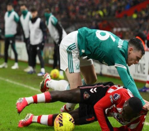 第69分鐘,遠藤航受傷被換下場,喬-戈麥斯替補上場。隨后,勒費埃禁區內手球,但裁判沒有任何表示。第75分鐘,利物浦繼續換人,加克波被換下場。瓊斯替補上場。最終,利物浦1-0險勝桑德蘭。英超爭四格局大亂,利物浦總積分達到42分,排名第6,只比第5的切爾西少2分,比第4的曼聯少3分。