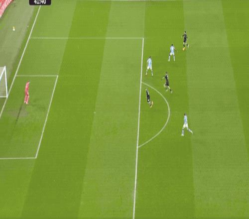 第24分鐘,曼城如法炮制,羅德里將球分到右路,努內(nèi)斯果斷傳中,哈蘭德頭球沒能頂?shù)剑で蛟以诓└竦念^上造成烏龍助攻,塞梅尼奧搶射破門。